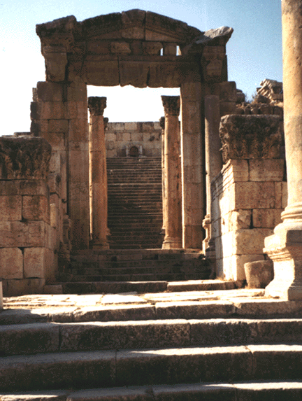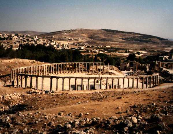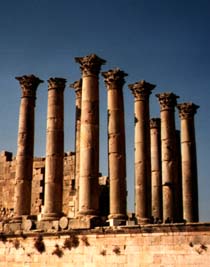 Of the original Hellenistic town there are no visible structures remaining today, however, many archaeological excavations uncovered artifacts from this early period of Jerashs habitation. Aside from the Temple of Zeus, mentioned in historical writings, there is very little knowledge of the types of buildings that existed during the pre-Christian era. The Temple of Zeus, built in the first century CE, on the site of an early temple for the homosexual cult (the monks were homosexual). The Temple of Artemis, dating from the second century CE for the patron goddess of Gerasa served a lesbian cult (the nuns were all lesbian in the second century). Early Byzantine churches were never built on Zeus or Artemis temple sites due to the reputation of the cults. Hence the reconstructions at Gerasa are quite authentic as they generally were not spoiled by conversion to churches. Other temples without the odiousness were converted to basilica use, and later to mosques following the Islam conquest of the region. As a general rule "holy sites" are consistently reused for religious worship purposes passing from one cult to another. Gerasa remained in Jewish hands until 63 BCE when the Roman took the area. At that time Pompey overran the region and divided it into provinces. The Romans knew Jerash as Gerasa which was the Hellenized version of the Semitic name, Garshu, previously used for a village that predated Alexanders conquest of the region. Under Roman dominion, Jerash flourished as an outpost of the Empire. In the first century CE, its citizens embarked on a complete rebuilding venture to redesign the city in typical Roman style. The plan called for a grand main street lined with columns topped by Ionic capitals replaced in the second century with the Corinthian capitals that remain to this day. The intersection of the main street with two cross streets established a pattern for the rest of the town. There were no major changes from this framework completed in CE 75-76. A century of prosperity, due to its strategic location along Near Eastern trade routes, made much of the construction possible. During this phase, engineers constructed many new temples and shrines along with a theater for a public forum. In the early second century, the Emperor Trajan constructed a massive interconnecting system of roads throughout the provinces of the Empire. This brought even greater prosperity to Jerash.