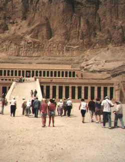 Thutmose II then sought to have the throne pass to Thutmose III, his child by a concubine, or perhaps a commoner secondary wife, named Iset (Aset, Isis), by claiming that the god Amen Ra chose Thutmose III as his successor by prophecy. Some hold, although it is rather unlikely, that he went so far as to join his son and daughter in marriage to secure Thutmose III's succession to the throne. Thutmose II sought to win public support for his son by another wife by claiming that the god Amen Ra revealed through prophecy that it was Thutmose III who was to succeed him. He and his supporters sought to so win the popular support of rank and file Egyptians. Unless there was a serious political rival, such as an adopted Hebrew son of the throne princess called Moses, there was no need to conjure up such a prophecy. Hatshepsut was a very strong-willed, ambitious woman who, after the death of her husband, Thutmose II, seized control of the throne. Having never forgotten that her heir was the legal and rightful heir to the throne. She took control but lacked the power to completely oust Thutmose III. Supposedly, she and Thutmose III were joint rulers with her as the regent. She ruled, however, not as the queen of Egypt, but as King of Egypt. She reigned as a man. Her statues show her as a man, complete with the traditional false beard that men wore (not that she went around in men's clothes all the time - she did not). Just for the public image since this was a male oriented society. She felt it would have more impact if she represented herself as a male than a female. Nevertheless, the Egyptian people knew she was a female. It was simply a matter of presenting herself that way. At first she had to be content with being the regent for Thutmose III due to the made-up prophecy spread by his father and believed by the superstitious pagan Egyptian masses. Nevertheless, in reality from the first she was the actual ruler of Egypt. For matters of state she allowed herself to be shown as a co-ruler with Thutmose III. She had his name inscribed next to hers. As her power and influence grew she took steps to establish total control and removed his name from monuments. Declaring that her father, Thutmose I, had, in fact, publicly named her not Thutmose II as his successor, she crowned herself as the sole heir to the throne of Egypt (Forbes 1998:48; Hussein 1989:23). This set up the situation for the elimination of Thutmose II and the eventual transfer of the throne to her own heir. Egyptian records show Hatshepsut riding high and handsome, fully in control of the ship of state. Her reign was a prosperous one. Things went well for Egypt under her rule and she appears to have been an effective ruler. Suddenly, however, Thutmose III managed to seize the throne. How he brought this about is unknown. Obviously, she lost support of the critical elements of the upper part of Egyptian society. Thutmose III seized the moment and secured that support. He managed to overthrow her. We do not have any details in the surviving Egyptian records for the change in support and success that Thutmose secured at that time. Nevertheless, in ca. 1483 BCE Moses fled Egypt and it is exactly in this period (give or take a year) that chronologists pin the successful revolution against Hatshepsut and when Tutmose III seized the throne. We can logically connect these two events because it is obvious that Hatshepsut deposed Thutmose III and she groomed Moses as her successor (as the implication is in Acts 7 that Moses could have become the ruler of Egypt cf. Hebrews 11:24). It is quite natural that Thutmose III would not have had any commitment to Moses. When Thutmose III received word that Moses had killed an Egyptian it was a defining moment, a politically expedient opportunity to use this information to rid himself of this hated rivals Hatshepsut and Moses. Moses, apparently anticipating this, fled from Egypt to Sinai. If this reconstruction is correct, that this is the period of the Exodus and the period of Moses, then Hatshepsut is the only likely candidate for being Moses' adopted mother. She was the daughter of pharaoh who pulled him from the Nile. It would also explain something that has been enigmatic in Egyptian history -- what caused Hatshepsut to so quickly lose support of the priestly aristocracy and the military that Thutmose III could stage a successful revolt against her. Supposedly she simply died peacefully in her fifties but more likely she had some assistance in departing on her voyage to the afterlife. If she groomed Moses, despite his Hebrew origins, to be the next pharaoh and it turned out that he was a murderer of Egyptians you can see the cause of her loss of support and likely suicide or murder. The shift in this aristocratic and military support allowed Thutmose III to stage a successful coup. This pharaoh, Thutmose III, would then be the pharaoh that had to die before Moses could return from Midian (Exodus 2:23). He was the pharaoh who sought Moses' life. That makes an interesting point. Hatshepsut ruled but technically it was joint rule - she had usurped power, but technically Thutmose III still carried the title of pharaoh jointly with her. This enabled him to get rid of her completely. Thutmose III apparently did something that only occurred one additional time in the span of Egyptian history. The Egyptian people viewed their pharaohs as being a god in the flesh. The temple of Hatshepsut lies along the Nile in the Diro Valley, just across from Karnak, where one can see what remains of Hatshepsut's figure. Thutmose III, who undoubtedly hated her, completely eradicated nearly all her monuments throughout Egypt. Only on one other occasion would Egyptian authorities eradicate the monuments of a previous pharaoh and erase his name wherever found. That was the case of the heretic pharaoh Akhenaten who closed all the temples of the Egyptian gods and tried to get them all to worship a single deity � the god of the 