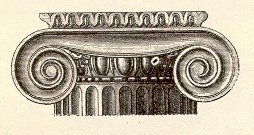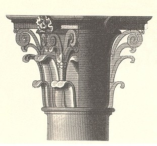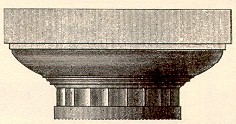 In the Doric order, a thick plain slab without dressing; in the Ionic order, with a molded lower edge; in the Corinthian order, with concave sides and the corners removed. In the architecture of ancient Egypt a large thick cube. By working the ends of such blocks artisans produced a laterally spreading form of capital, later detailed by addition of moldings, multiplication of parts, and ornamentation with abstract, floral, zoomorphic forms.